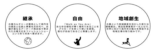 古着カルチャーの継承と、商店街の歴史を次世代へ繋ぐ地域の取り組みを融合させ、多様な人々が共に未来へ歩める街として展開します。