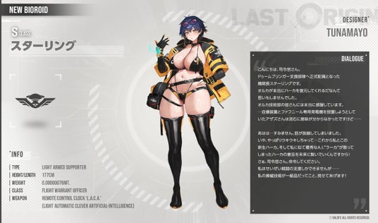 本アップデートより、新規戦闘員のSランク軽装型支援機「スターリング」が登場します。ドゥームブリンガー支援部隊の機関長として登場するスターリングは、復元された兵器「ハーカ」と優秀なA.I.ラーカと共にオルカの戦場を支援します。