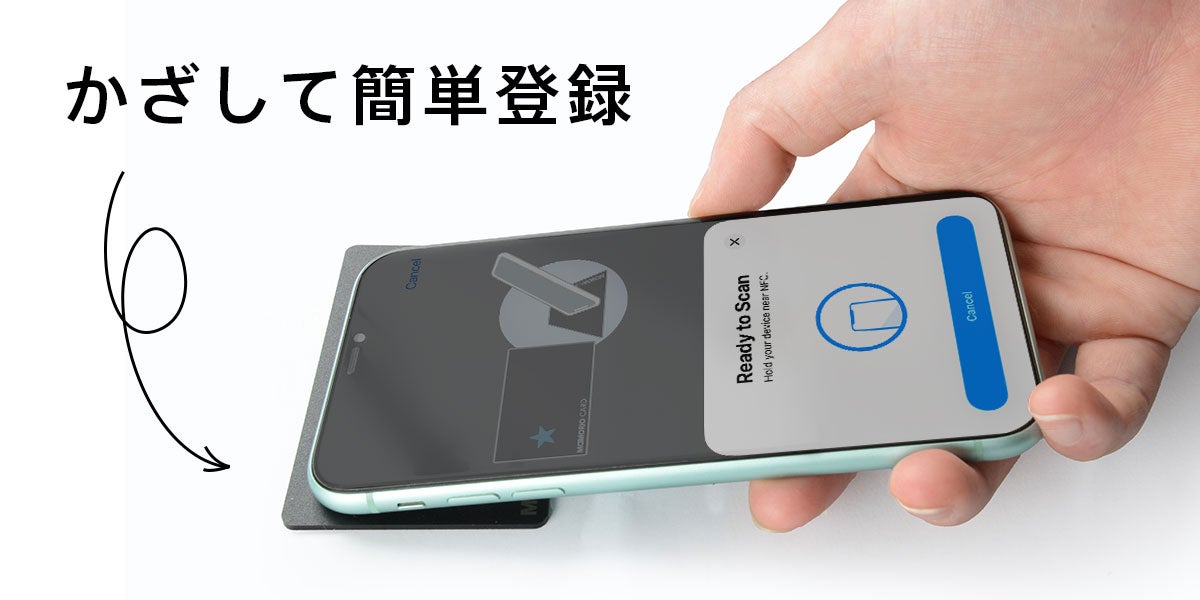 MAMORIO CARDはスマートフォンをかざすだけでアプリへの登録が可能です。複雑な設定や操作を必要とせず、初めて利用する方でもスムーズに使い始められます。