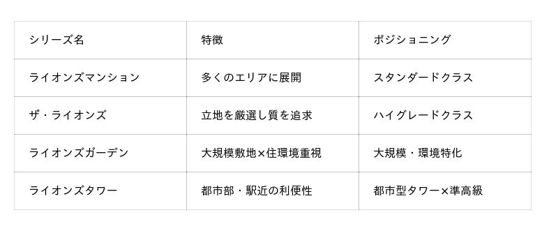 1.大京「ライオンズ」シリーズにおけるブランドごとの役割とポジショニング