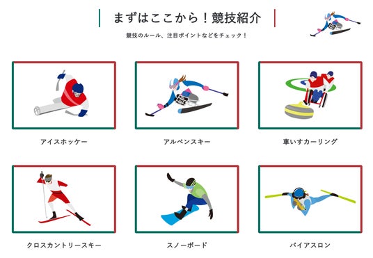 - 「競技」「日本代表選手」で競技の魅力や注目選手を予習