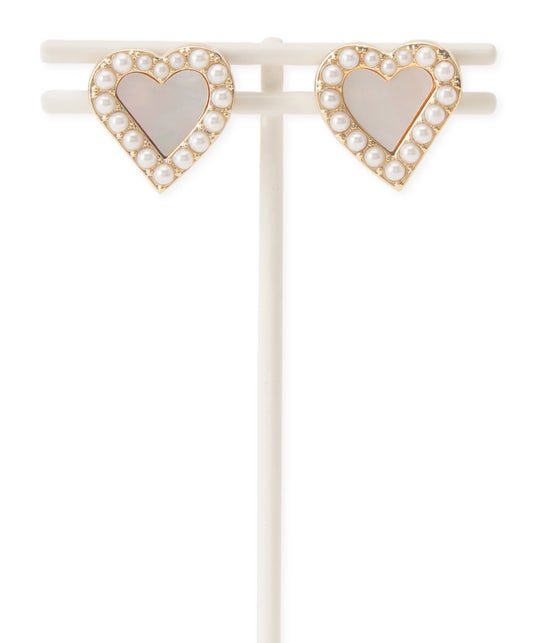 ハートモチーフは、白蝶貝とパールで仕上げた上品な印象。甘くなりすぎないすっきりとした表情が魅力で、白色のハートは「純粋な気持ち」「清らかな愛」を意味します。同デザインのイヤリング(ピアス)も展開します。