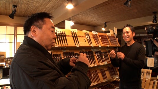 立ち寄ったのは、江戸で作られた江戸木箸の専門店「江戸木箸 大黒屋」。1膳1膳丁寧に削った職人の手作りが自慢で、四角形から五角形・六角形・七角形・八角形まで形いろいろ、約200種類の箸が揃っている。いろんな箸を試した塚地が一番気に入ったお箸は…?
