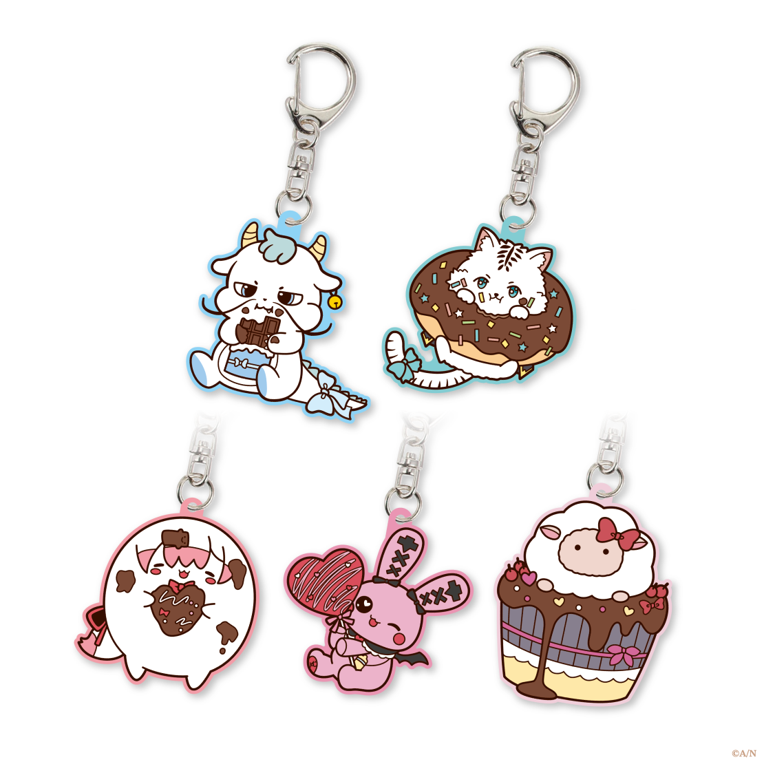 グッズラインナップはぬいぐるみマスコット、ラバーキーホルダー、ステッカーセット、マスコットヘアバンドの4種類。