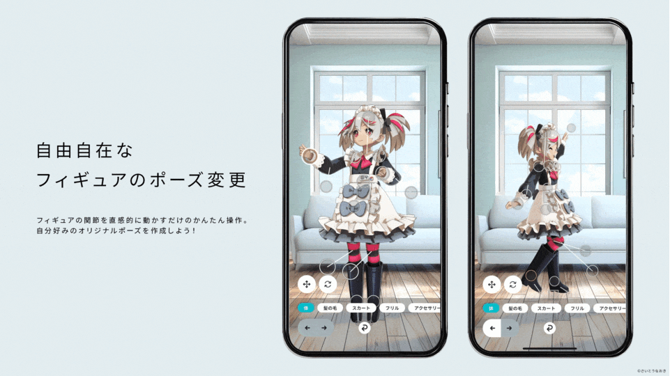 直感的なタップ操作によりフィギュアの関節を動かしてポーズを付けることができます。