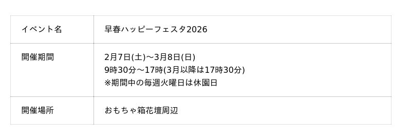 黄色いセイヨウスイセンやウメが見ごろを迎える海の中道海浜公園(福岡県福岡市東区)で、一足早い春を楽しめる「早春ハッピーフェスタ2026」を開催します。