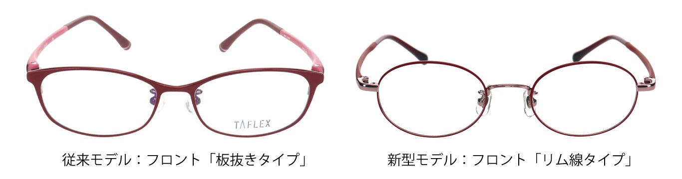 「TAFLEX」は、2011年の発売以来、累計21万本以上を販売する当社のトップ売れ筋シリーズです。その圧倒的な掛け心地の良さから、これまで多くの支持をいただいてきましたが、ユーザーの約7割が男性という状況にありました。 今回、女性が抱える「長時間着用による鼻の跡や疲れ」という悩みに着目。ブランドの強みである“ストレスフリーな機能性”はそのままに、より女性が日常で手に取りやすい上品なデザインをラインアップしました。新型の特徴:デザインを「面」から「線」へ。より上品で自然な印象へ。