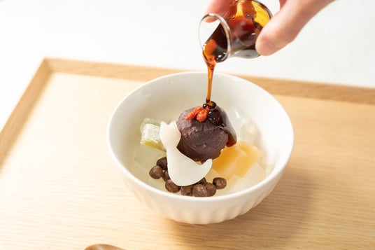 濃厚な黒蜜をたっぷりかけて仕上げれば、奥行きある甘みと塩味のバランスが絶妙な味わいに。