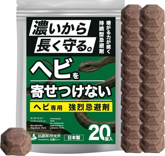 ヘビが嫌がる忌避香料を高濃度で配合した固形タイプ。