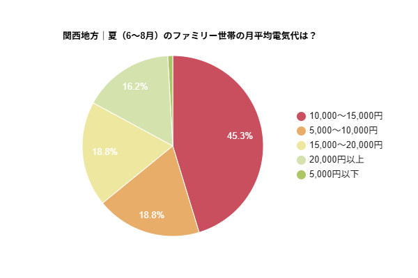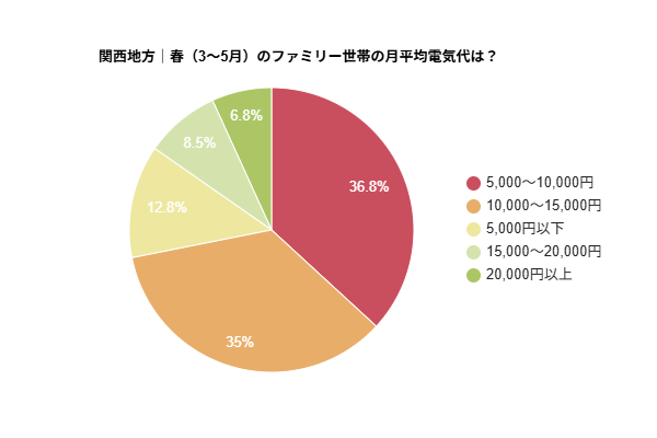 - 関西地方のファミリー世帯の月間電気代は「10,000~15,000円」が36.8%で最多