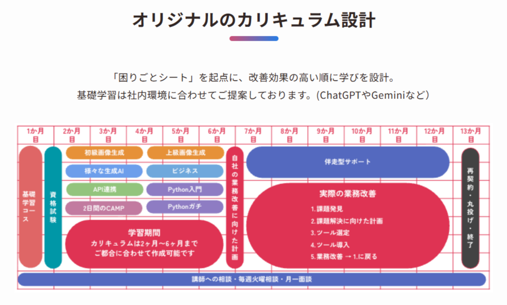 受講企業ごとにオリジナルのカリキュラムを設計いたします。