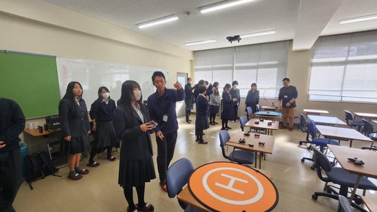 中京テレビ放送株式会社(本社:名古屋市中村区 代表取締役社長:黒崎 太郎)のドローンスクール『そらメディア』は、三重県立津商業高等学校の情報システム課3年生を対象に、課題研究授業の一環としてドローンの授業を全5回開講しました。生徒たちはドローンに関する基礎知識、テレビ制作現場におけるドローン活用の講義、ドローンの基礎操作、さらにはインドアドローンショーにおけるプログラミングまで幅広い内容を学び、最終的にはインドアドローンショーの制作・発表を行いました。