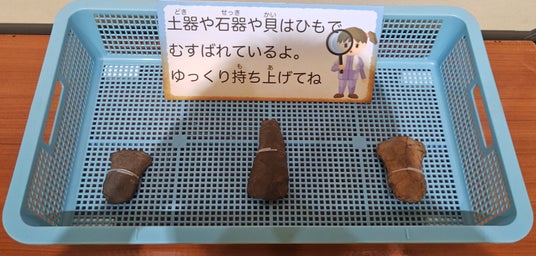 土器や石器などをさわったり、発掘調査の疑似体験をしたりすることができます。調査方法の解説を聞いたら、実際に道具を使って掘ってみよう!出土したモノを観察して様子を記録すると気分はもう考古学者!発掘体験で記録したシートは持ち帰ることができます。(発掘体験は開催日が決まっています。)