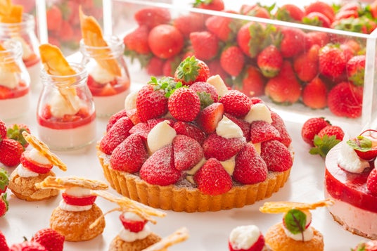 イチゴの魅力を最大限に引き出したムースやジュレ、タルトなど、見た目にも華やかなスイーツがブッフェ台を彩ります。15周年を記念した、この期間だけの特別なラインアップです。