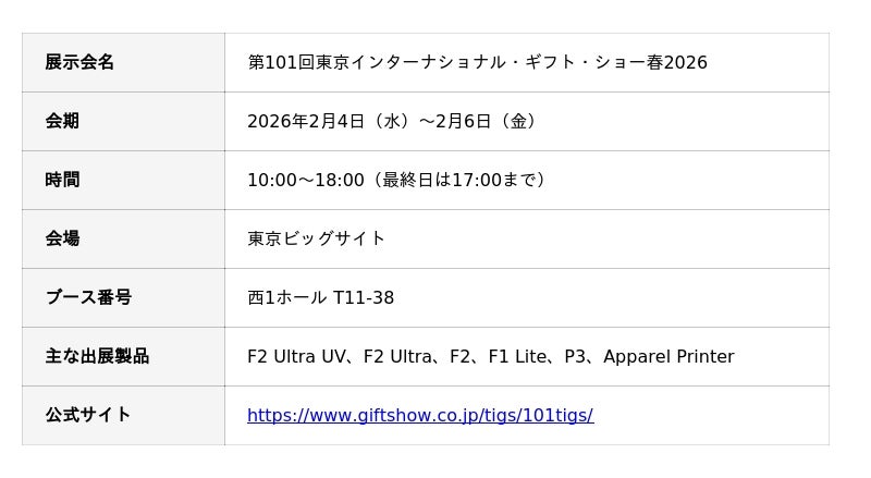 レーザー加工機ブランド「xTool」を展開するMakeblock Japan株式会社は、2026年2月4日(水)から2月6日(金)まで東京ビッグサイトで開催される、パーソナルギフト&生活雑貨の国際見本市「第101回東京インターナショナル・ギフト・ショー春2026」に出展いたします。