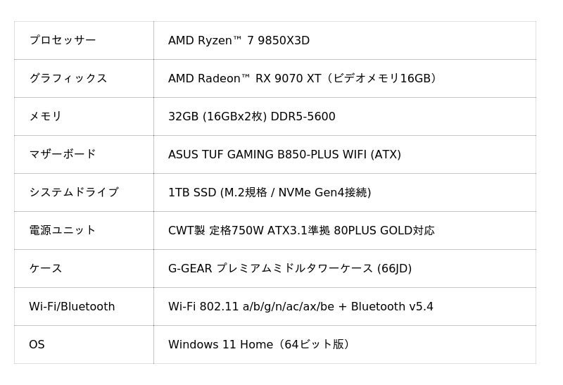 株式会社ヤマダデンキ(本社:群馬県高崎市、代表取締役社長:佐野 財丈)は、TSUKUMO(ツクモ)ブランドで独自に展開するゲーミングPC「G-GEAR」において、AMD Ryzen(TM) 7 9850X3D プロセッサ搭載モデルにグラフィックスカード選択可能なゲーミングPCの新モデルを、2月6日(金)に発売いたしました。
