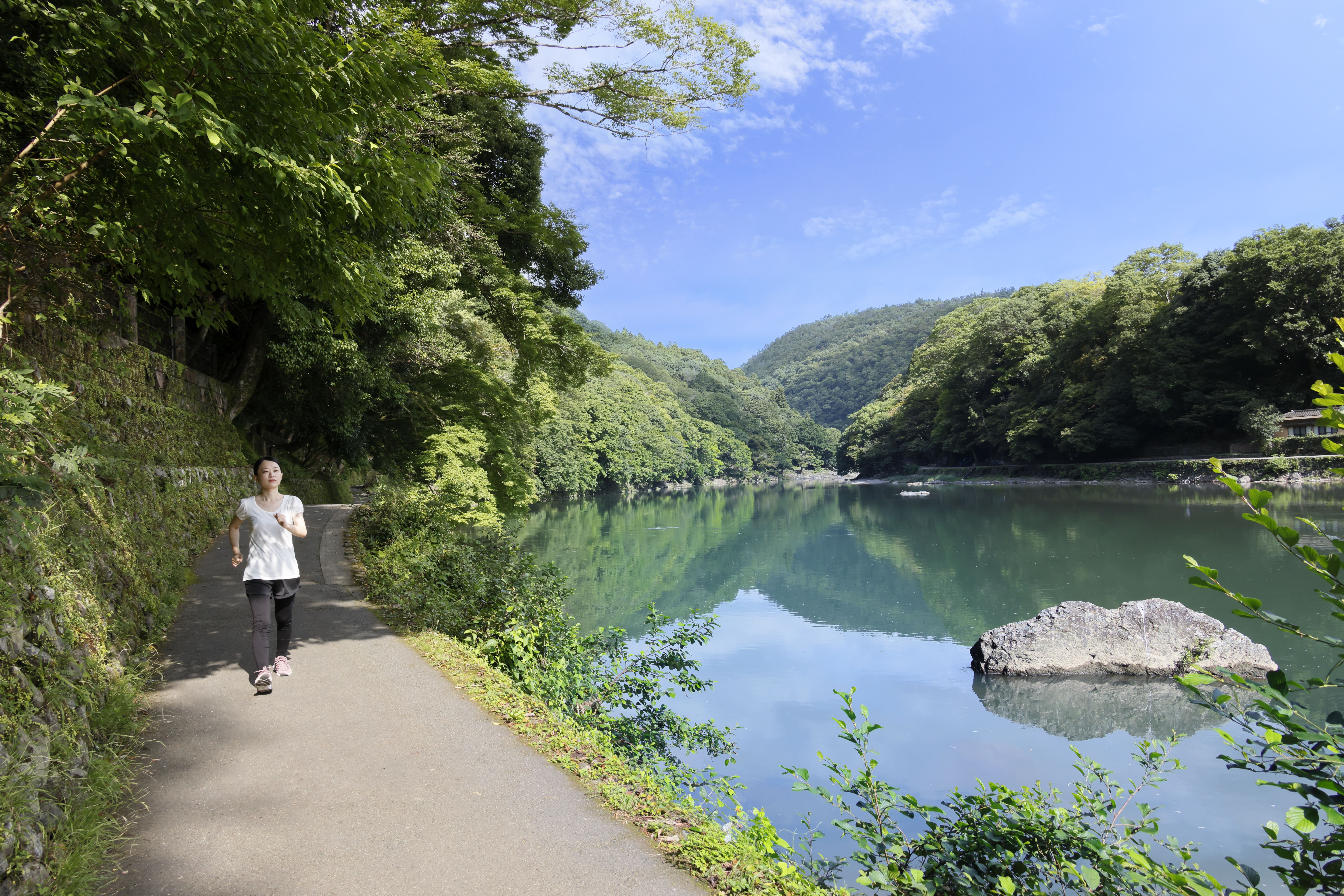 星のや京都から続く大堰川沿いの道