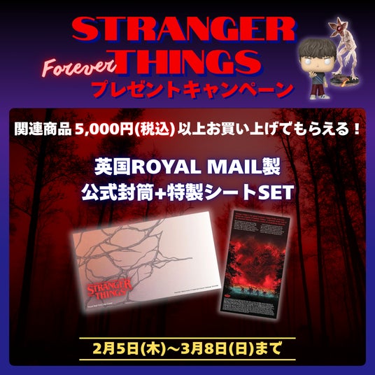 2026年2月5日(木)~3月8日(日)/ 5,000円(税込)以上購入で英国 ROYAL MAIL 製 STRANGER THINGS 公式封筒+特製シートSET をプレゼント