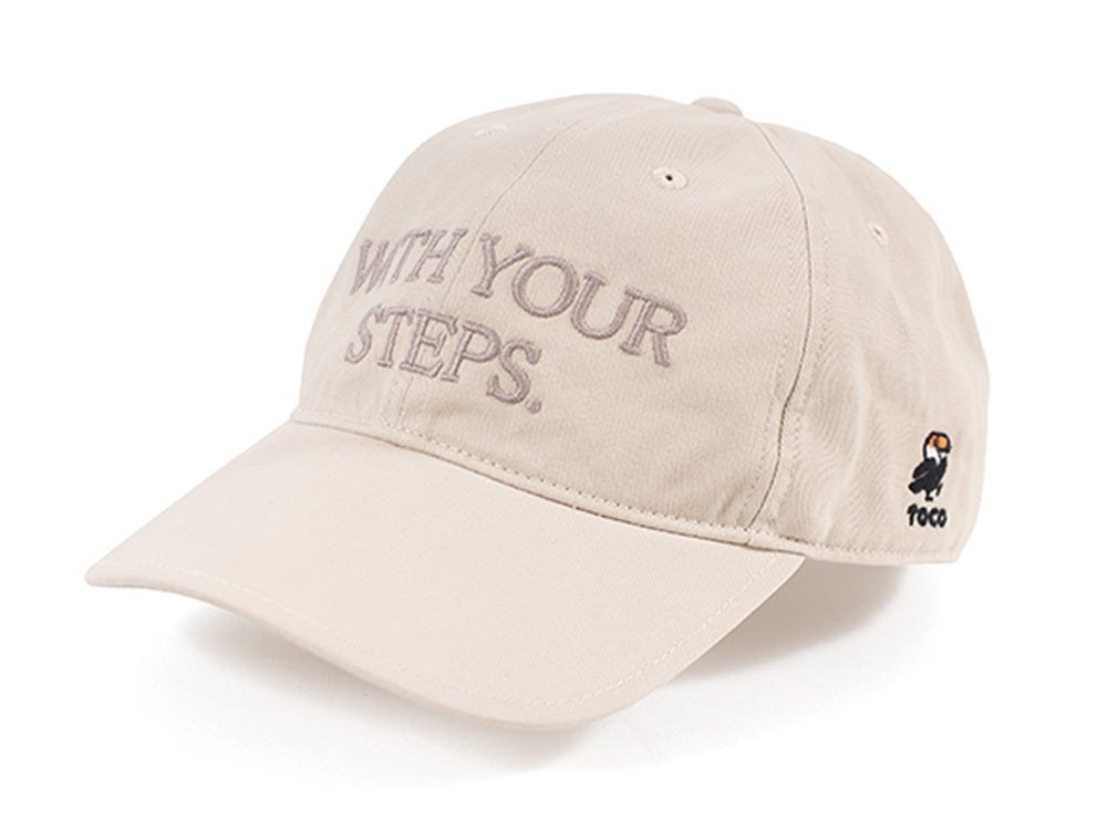 今回のリリースでは、機能性とデザインを両立させた5つのアイテムをラインナップしています。1. WITH YOUR STEPS. 6パネルキャップ(型番:THT004-IV/THT004-BK)