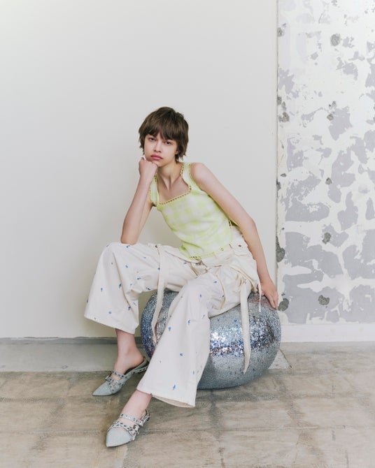 フラワー刺繍のミリタリーアイテムやフリルディテールのフーディーセットアップなど、アクティブなアイテムをフェミニンムードに昇華した2026年春コレクション
