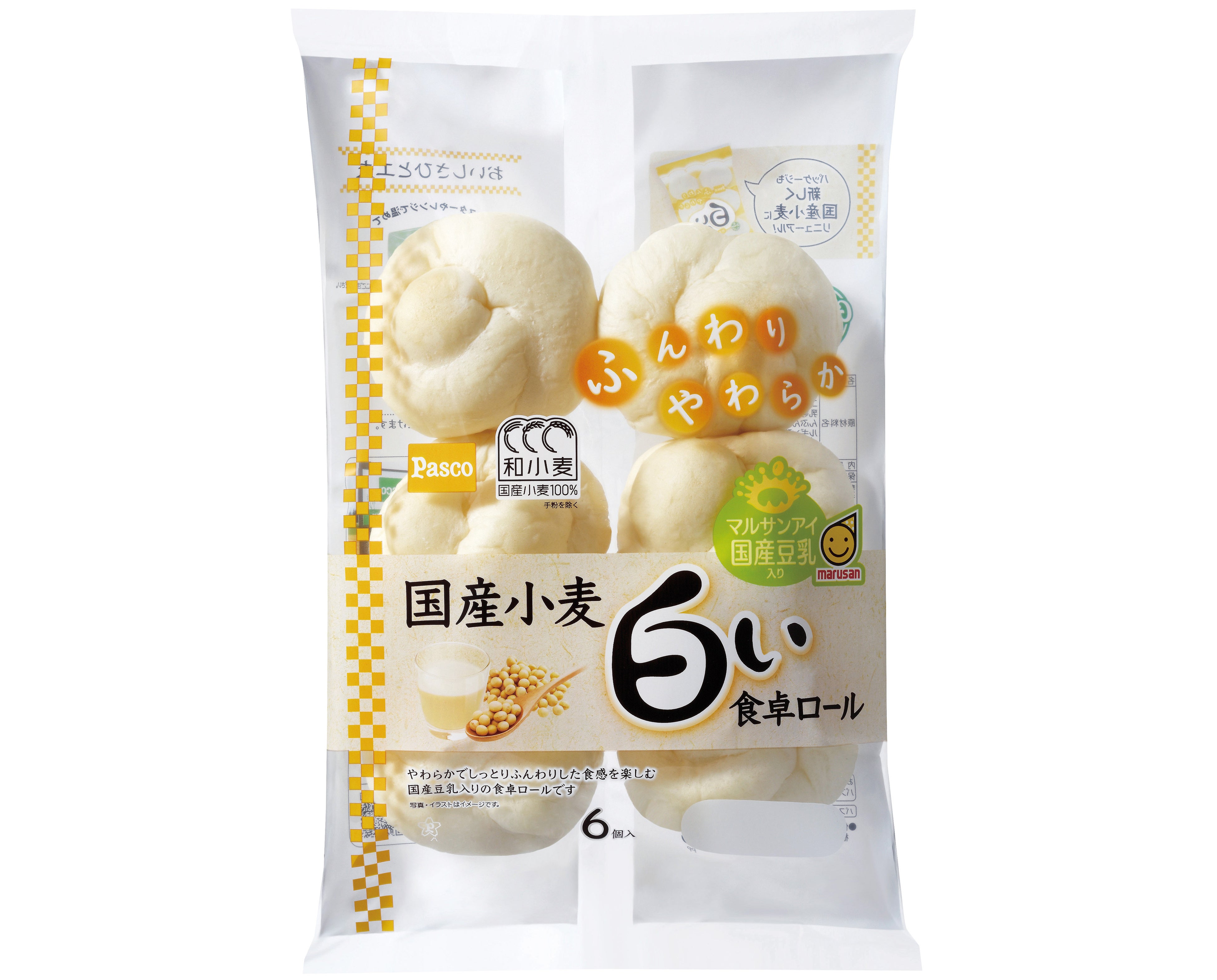 ■第1位 国産小麦 白い食卓ロール 6個入国産小麦の小麦粉を100%使用(手粉を除く)した、やわらかでしっとりふんわりした食感を楽しむ、豆乳入りの食卓ロールです。マルサンアイの国産豆乳を使用しています。