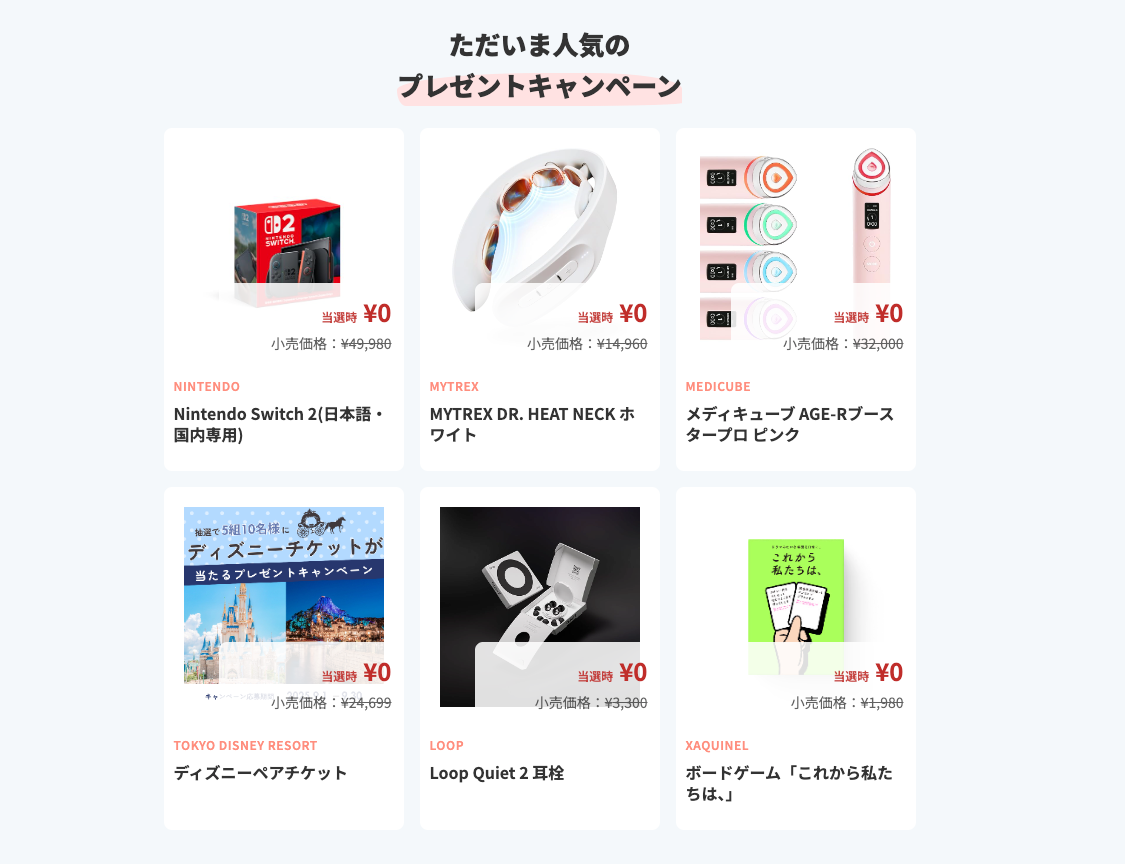 当選発表: キャンペーン終了後、当選者にメッセージにて発表