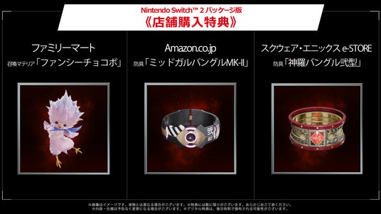 ゲーム内で使用できる召喚マテリアや防具が店舗購入特典として付属します。