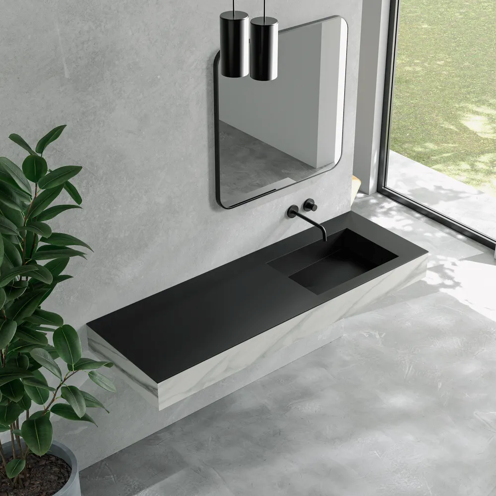 1. 重力を感じさせない「浮遊する洗面台」壁面に浮かぶような佇まいを実現することで、空間に広がりと建築的な美しさをもたらします。2. 既製品とオーダーメイドの境界を消す「72通りの選択肢」 サイズ・水栓・異素材(木/石/ステンレス カラー)を自由に組み合わせ、まるでオートクチュールのように空間を仕立てることが可能です。