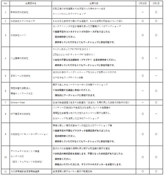 5 実施内容(出展ブース)※出展日に「〇」