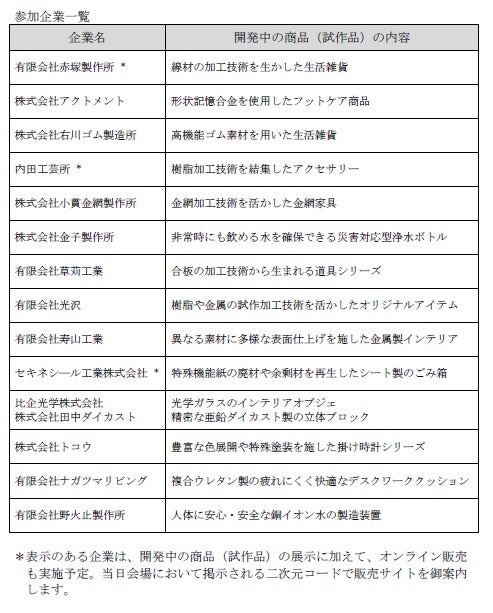 ※出展する企業及び試作品については、下記【参加企業一覧】をご覧ください。
