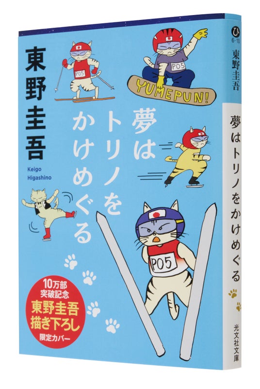 このたび、東野圭吾『夢はトリノをかけめぐる』(光文社文庫)が発行累計10万部を突破しました。それを記念して、著者本人による「描」き下ろしイラスト全面帯を制作、1月下旬より出庫を開始しましたのでお知らせいたします。