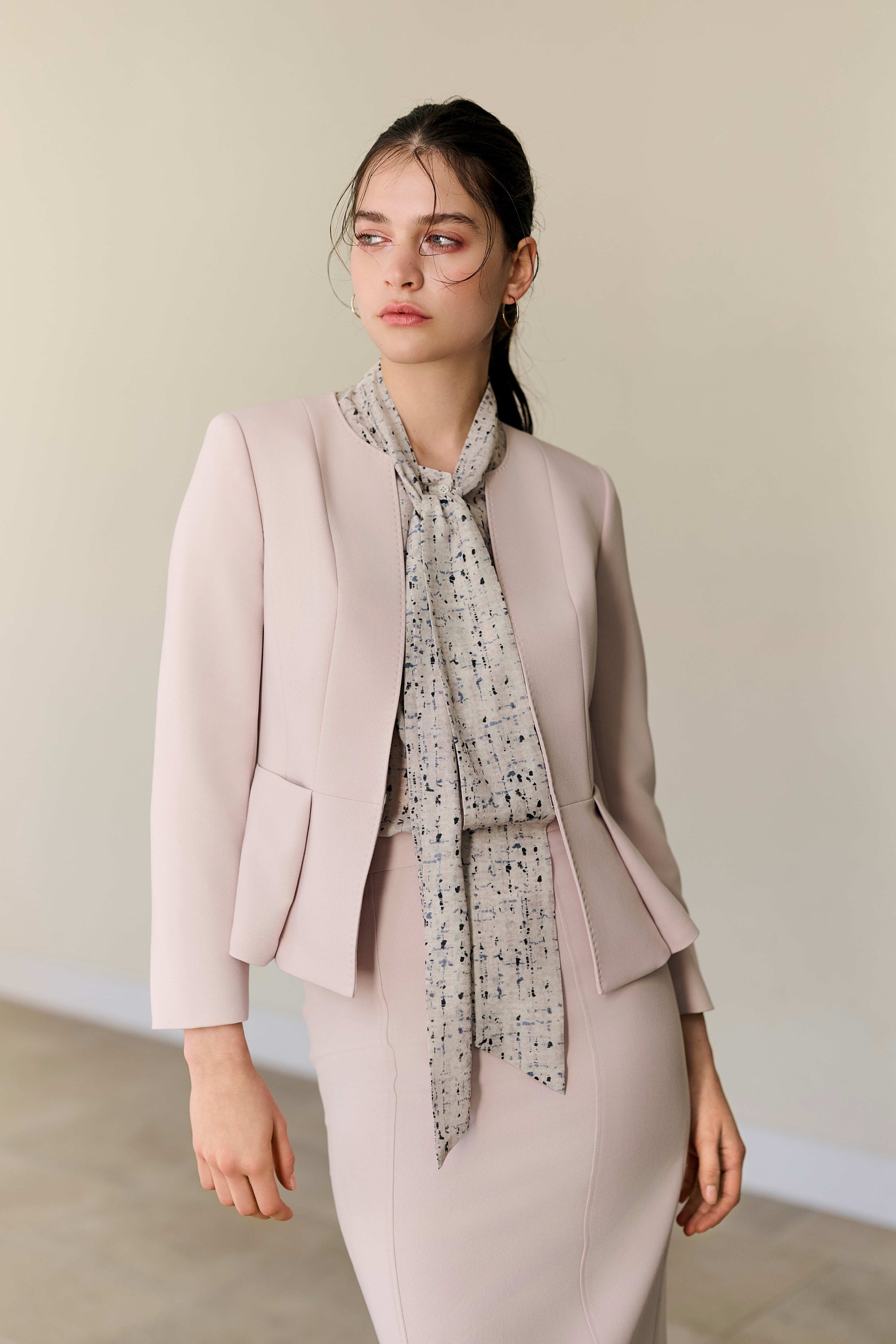 さらに、クードシャンスでは17代目となる「360°美シルエットシリーズ」の人気ジャケットも、着心地とサイズ感をブラッシュアップし、新しくペプラムシルエットを取り入れることで、より女性らしく作り上げています。