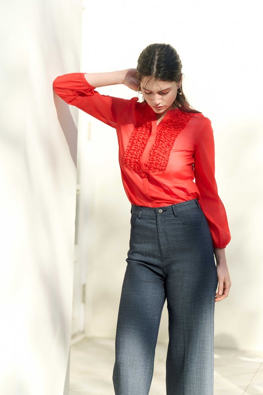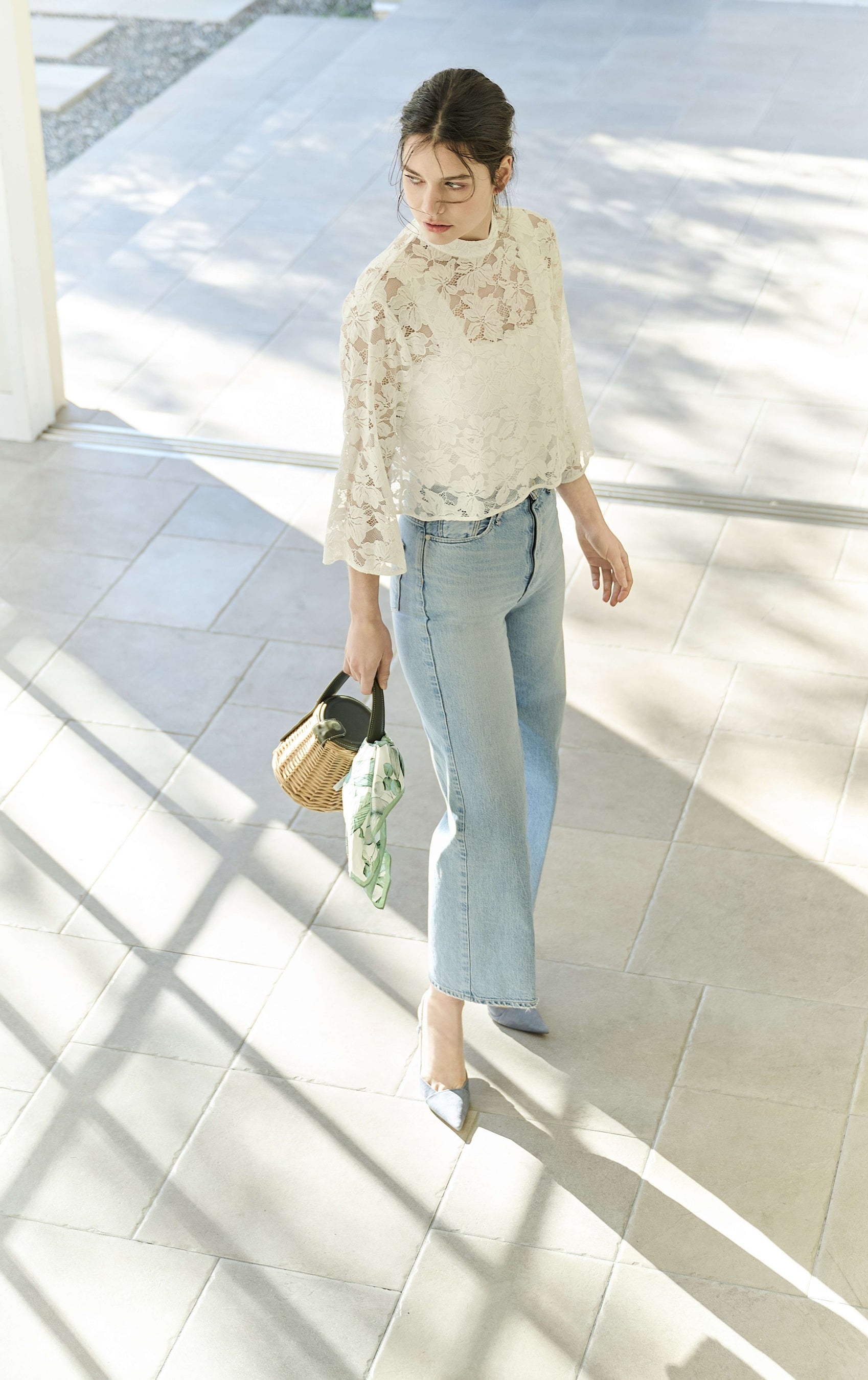 デニムやエアリーなシアー素材、凹凸感のあるレースが印象的なコレクションは、内面から滲み出る「艶感」を持つSENSUALITYな女性に向けて、着ることで気分が高まり、新しい自分に出会えるスタイルを表現しています。