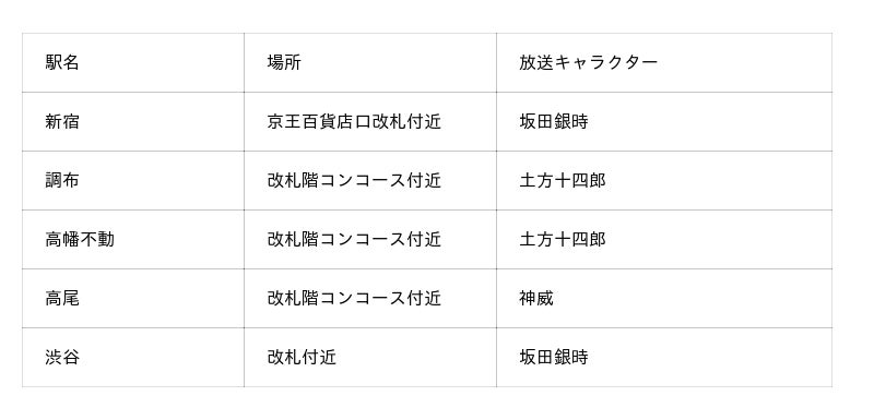 ・キャラクターパネル設置(京王井の頭線渋谷駅・京王線新宿駅、調布駅、高幡不動駅、高尾駅)
