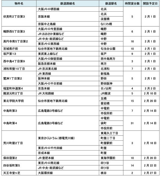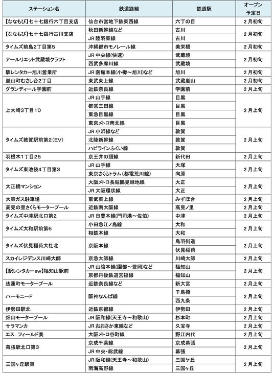 2月にオープンおよびオープン予定の「パーク&ライド」に適した駐車場は17件、「レール&カーシェア」に適したステーションは114件です。