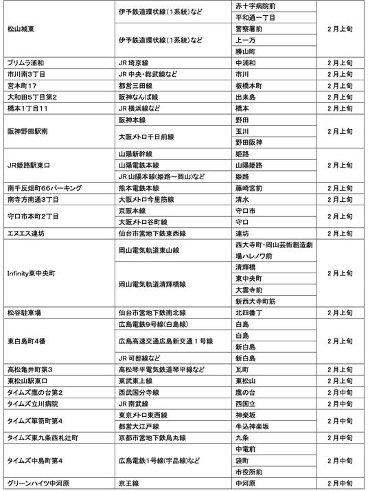 駐車場およびカーシェアステーションのオープン予定については毎月第5営業日にお知らせいたします。