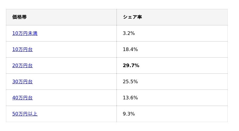 価格帯別 市場動向 ― 20万円台への注目が継続 ―
