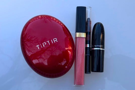 今日のポーチの中身は、TIRTIR(ティルティル)のクッションファンデ、CHANEL(シャネル)のグロス、DIOR(ディオール)のリップライナー、M.A.C(マック)のツヤ系リップ。