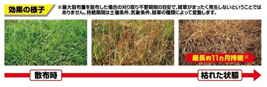 ※2最大散布量を散布した場合の刈り取り不要最長期間の目安で、雑草がまったく発生しないということではありません。