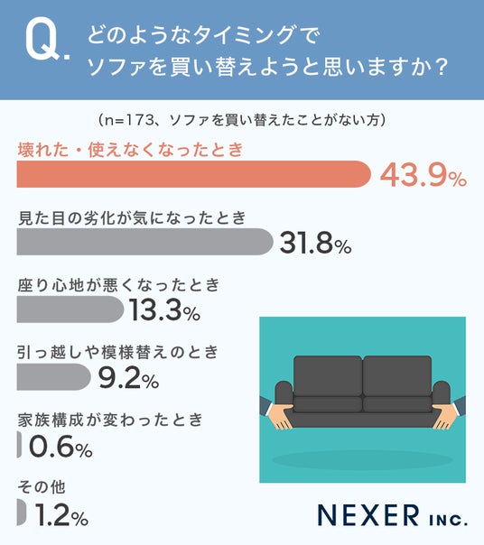株式会社NEXER・ソファを買い替えるタイミングに関する調査