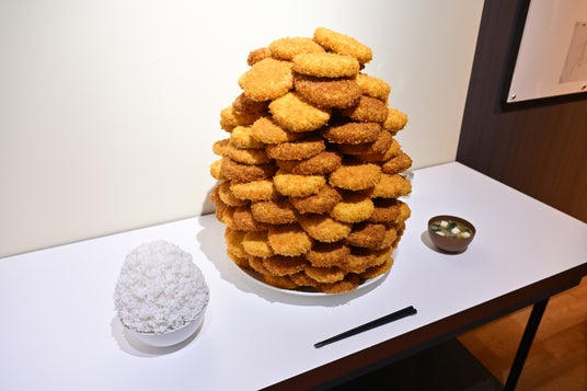 ところどころには作中の名場面を再現したエリアや、重要なアイテムを再現して展示しているポイントが存在しています。オグリキャップが食べていた山盛りコロッケの皿はあまりのてんこ盛りっぷりに、初見ではきっと圧倒されるはず。