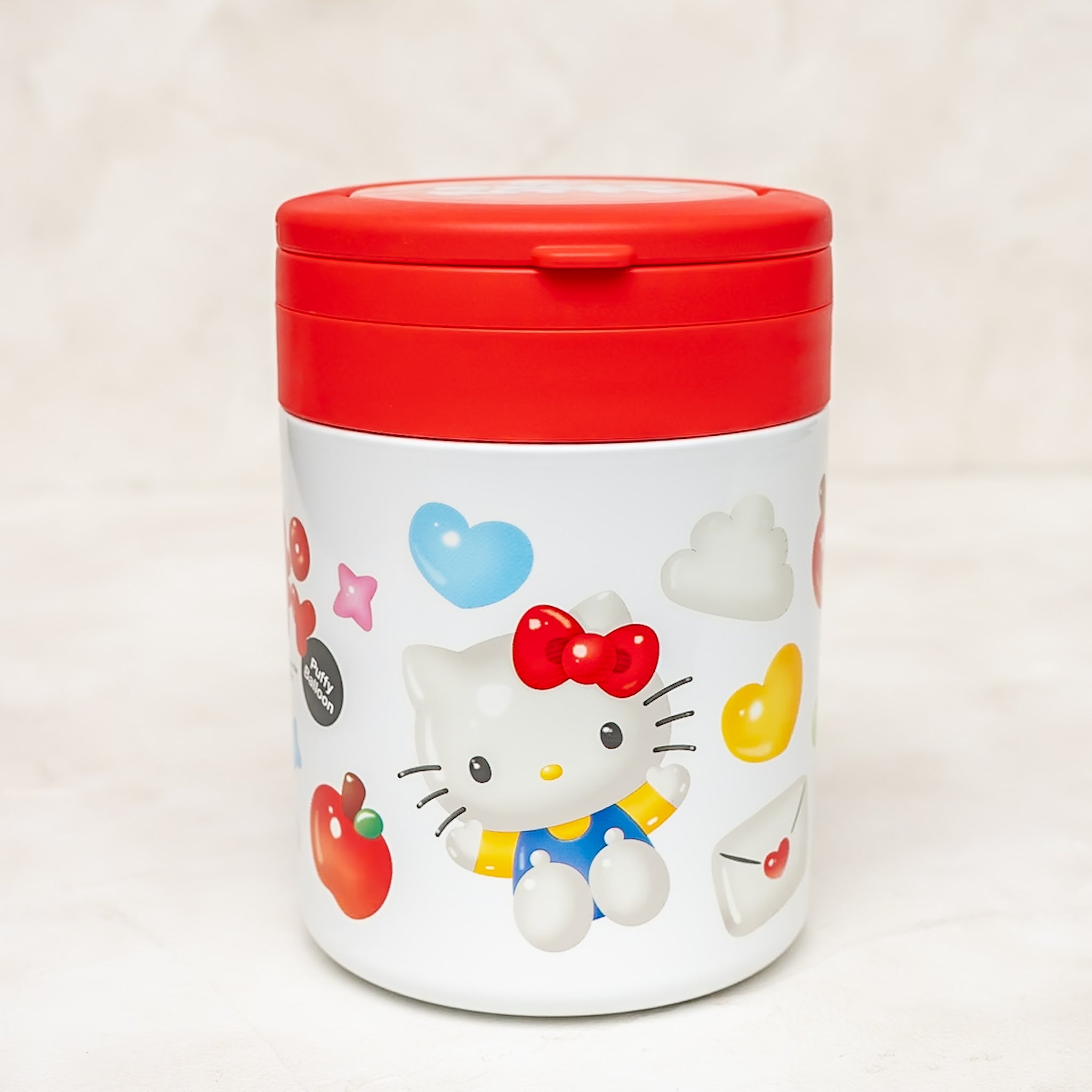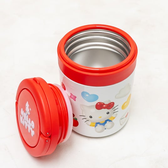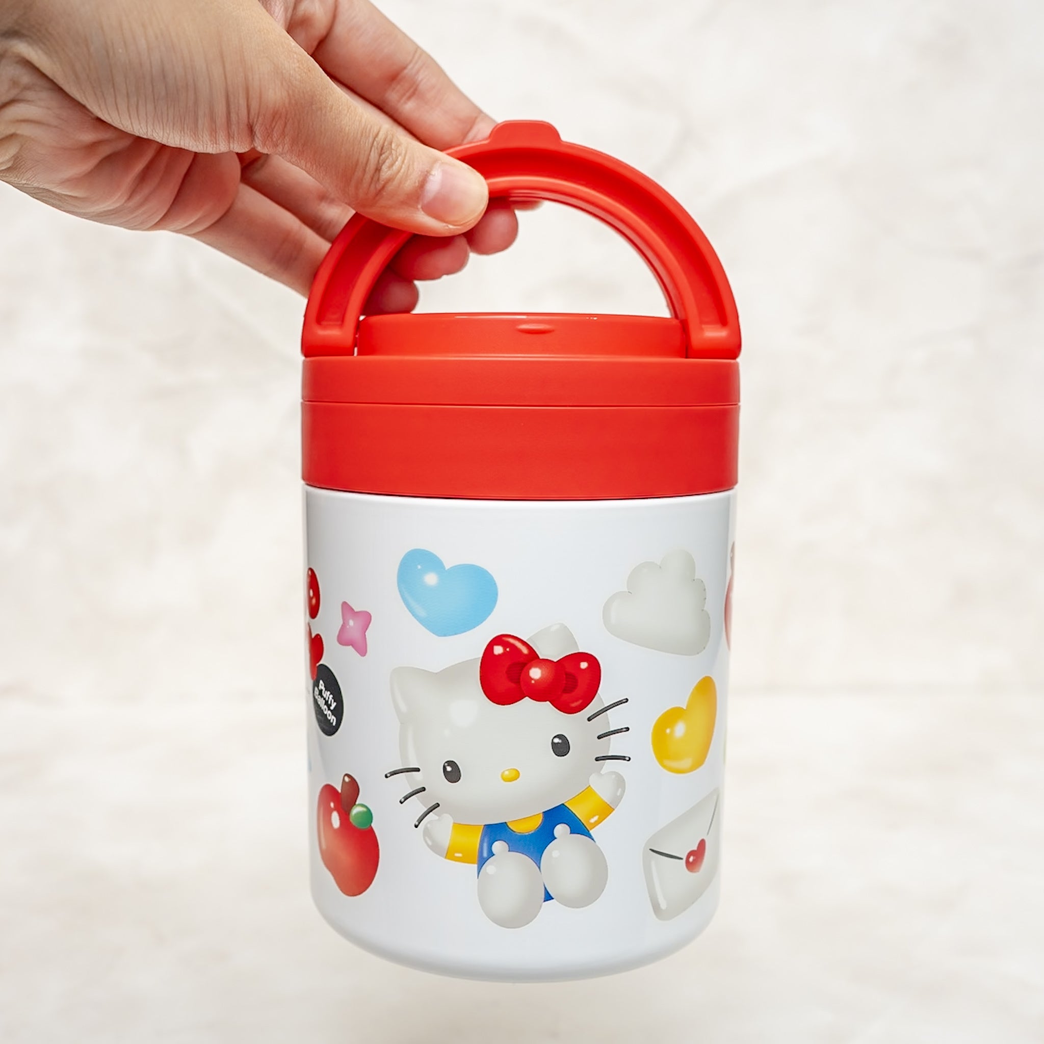 ハローキティ、マイメロディ、クロミ、シナモロールデザインの全4種。 ハンドル付きで持ち運びやすく、スープもサラダもおいしい温度で楽しめる500mlサイズ。