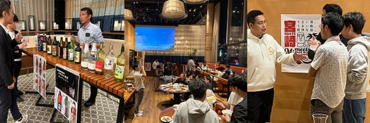 DMM 地方創生は、宮崎にゆかりのある方や宮崎が好きな方々と宮崎県をつなぐ交流イベント「Meets宮崎」を、前年度に東京・大阪・福岡の3都市で開催し、延べ140名を超える参加者との新たな関係づくりを進めてきました。そして今年度は、内容をさらに充実させ、昨年9月から今年1月にかけて、3都市・全5回の交流会を開催。前年度を上回る総勢181名の宮崎ファンとともに、多くの宮崎県の自治体職員にもご参加いただきました。各会場では、宮崎ならではの食材やお酒を囲み、あたたかい交流の時間が広がりました。