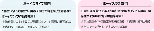 スターツ出版株式会社(本社:東京都中央区、代表取締役社長:菊地修一)が刊行する「スターツ出版文庫」と「BeLuck文庫」は、アスミック・エース株式会社(本社:東京都港区、代表取締役社長:牟田口 新一郎)とBL情報サイト「ちるちる」を運営する株式会社サンディアス(本社:東京都渋谷区、代表取締役社長:井出 洋)と共同し、青春×ホラー×ラブロマンスを掛け合わせた、まったく新しい共同小説コンテストを開催致します。『ボーイズライフ部門』と『ボーイズラブ部門』の2部門で、小説投稿サイト「ノベマ!」にて2月6日(金)から募集を開始致しました。