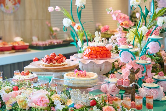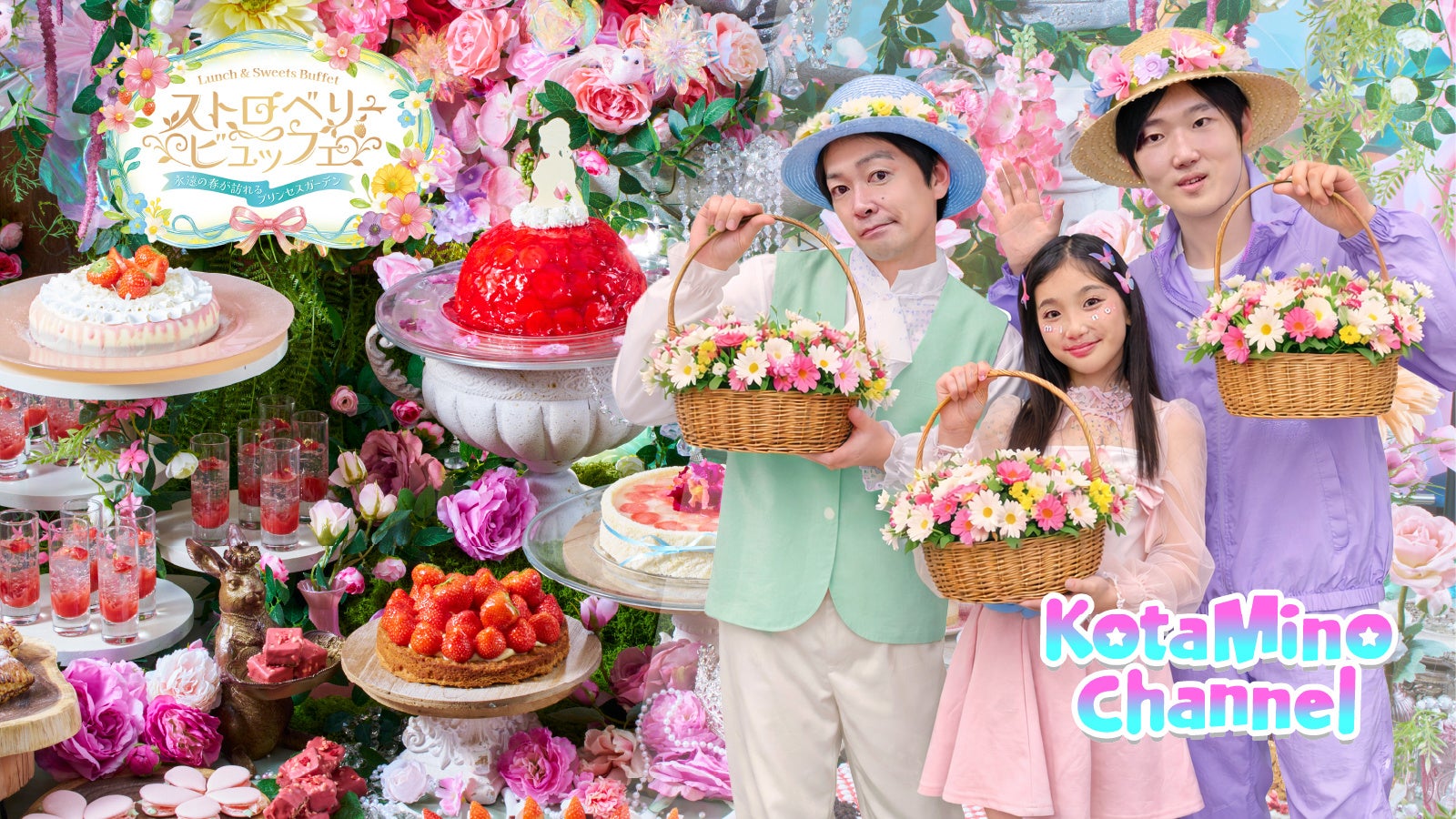 イベント会場となるレストラン「マティーラ」では、ランチ&スイーツビュッフェ 『ストロベリービュッフェ ~永遠の春が訪れるプリンセスガーデン~』を開催しております。グリム童話「眠れる森の美女」から着想を得たランチ&スイーツビュッフェは、イベント当日に限り、こたみのチャンネルにちなんだ小さな演出を施します。空間内には、みのちゃんの可愛らしいアニメキャラクターが登場するほか、エントランスではみのちゃんの等身大パネルが皆さまをお迎えいたします。ぜひ、当日限りの演出もあわせてお楽しみください。