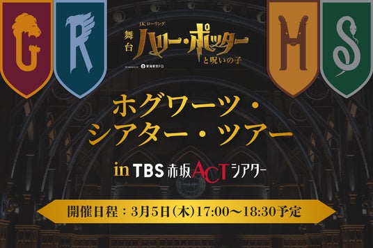 2026年3月5日(木)、TBS赤坂ACTシアターにて、舞台『ハリー・ポッターと呪いの子』の世界観をより深く、多角的に楽しむことができる体験型イベント「ホグワーツ・シアター・ツアー」の開催が決定いたしました。本イベントは、ファンの皆さまへの日頃の感謝を込めて、TBSチケットまたはホリプロステージで2026年1月~7月公演のチケットをご購入いただいた方の中から、抽選で200名様を無料でご招待します。当日は、ホグワーツの生徒たちによる迫力のパフォーマンス「ワンドダンス」披露や、専用劇場ならではの魅力を解説するトークショー、普段は立ち入ることのできない「舞台上」での記念撮影、物語を彩る小道具・衣裳の“触れる”展示など、本公演のこだわりを体感できる充実のプログラムをお届けします。