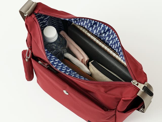 容量は約7Lで、財布・スマホ・ポーチ・ペットボトルまで無理なく収まります。