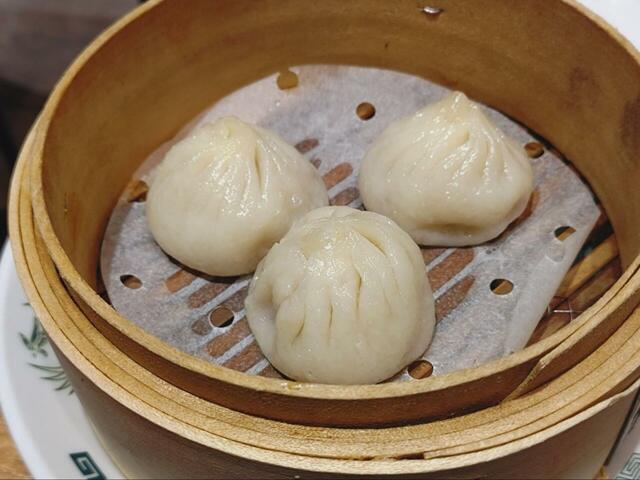 数ある点心の中から悩み抜いて「小籠包」を選びました。ホカホカの湯気とともにやってきた3つの「小籠包」。愛らしさ満点のビジュアルにすでに筆者は大歓喜です。