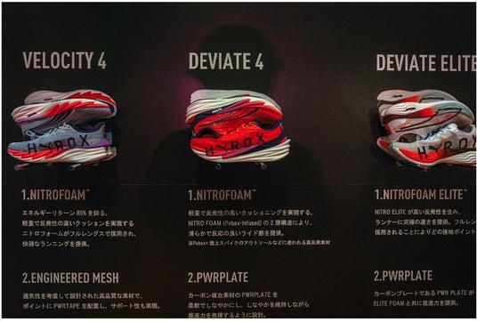 またSARAさんは、「2人で戦略を考えながら、会話をしつつ進められる点がとても面白かったです。笑いながら参加できて、次回もぜひ挑戦したいと思います」と、ペアでの参加ならではの体験を振り返りました。2人はレースにおいて「DEVIATE NITRO(TM) 4 HYROX」を着用。ランとワークアウトを繰り返すHYROXの特性において、安定した接地感やグリップ性が印象的だったと語っています。