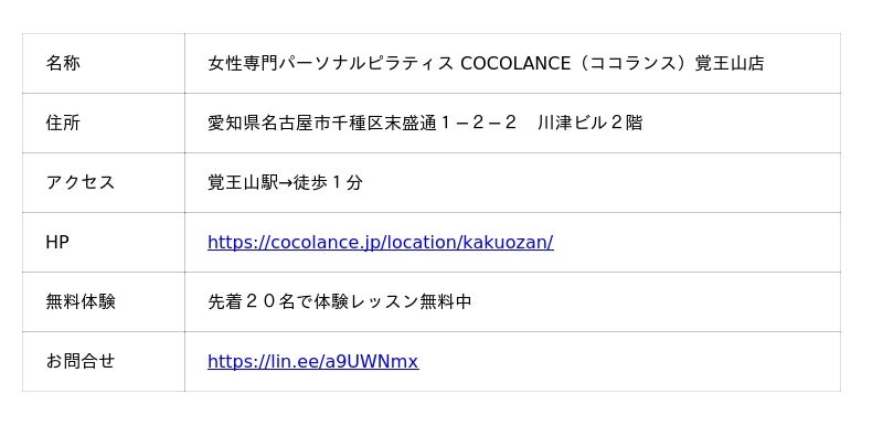 【COCOLANCE(ココランス)覚王山店 の施設情報】